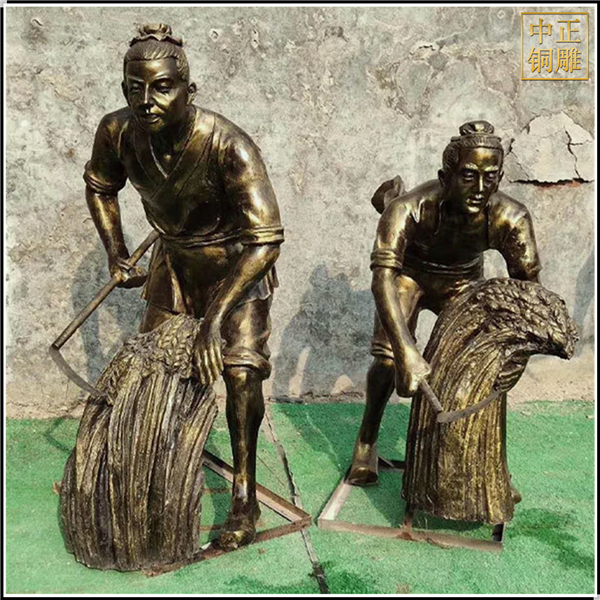 中正銅雕-割麥子人物銅雕塑、割麥子人物銅雕塑價格、割麥子人物銅雕塑廠家,我公司集科研、開發(fā)設(shè)計、普通鑄造、一次性整體澆鑄、精密鑄造于一體。本公司技術(shù)力量雄厚,設(shè)備,不但重視中國青銅器原有的藝術(shù)風(fēng)格,還繼承了文物原有的藝術(shù)品味,在繼承和發(fā)揚古老文化的同時,更深一步為新老客戶定身量制各種銅制、鐵制工藝品等產(chǎn)品,曾多次受到寺廟長老和美術(shù)學(xué)院教授的好評。