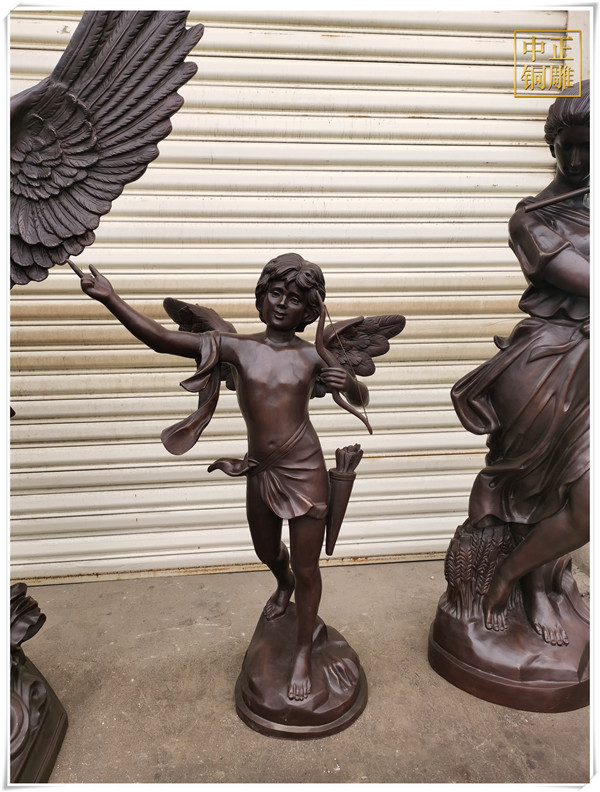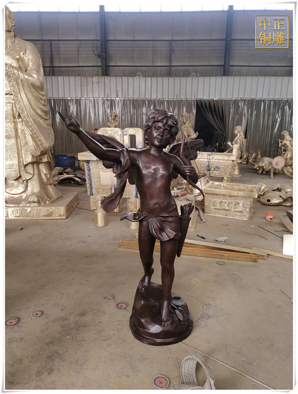 在中西方雕塑思維模式發(fā)展過程中,西方的雕塑文化形成了重視邏輯思維推理的模式,它結(jié)合了古希臘的科學(xué)主義和理想主義,為雕塑藝術(shù)的典范起到重要的基礎(chǔ),中國的雕塑文化則形成了強(qiáng)調(diào)直觀意向的思維方式,它通過直覺來直接體驗(yàn)、感悟并把握對象,這種思維方式超越了邏輯、概念而更長與悟性。中正銅雕-天使丘比特銅雕塑價(jià)格,天使丘比特銅雕塑圖片,天使丘比特銅雕塑批發(fā),中正銅雕廠制作的天使丘比特銅雕塑高1.5米,我廠主營各種銅雕塑制作,包含人物雕塑、動物雕塑、銅佛像、銅鐘等等,制作工藝精湛、做工精細(xì),質(zhì)優(yōu)價(jià)廉,是你選擇訂購銅雕廠家不錯(cuò)的選擇。