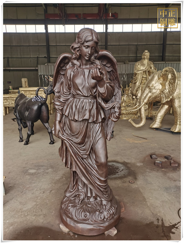 雕塑雖然制作困難,但是依舊以它獨有的魅力,吸引了許多人前赴后繼地拿起刻刀,從事雕塑的創作,在現代,依舊有許多雕塑家活躍在我們的眼前。而中正銅雕廠制作的西方天使女銅雕塑總高2米。