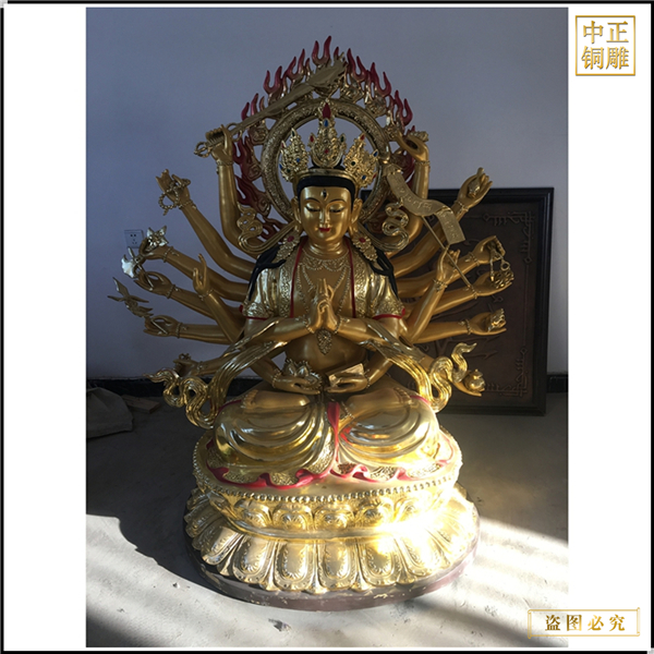 中正銅雕-鑄造千手觀音菩薩佛像、鑄造千手觀音菩薩佛像價格、鑄造千手觀音菩薩佛像廠家,我公司實行現代化企業管理,成功導入TPS生產管理系統,形成集塑制泥塑模型、泥稿后翻制模具、翻制石膏模型、工藝師加工制作、營銷為一體化作業的生產線,加上先進的銅雕加工設備,優秀的美術設計師,雕刻經驗豐富的制作人員, 造型精美,精雕細琢,深受客戶的好評。