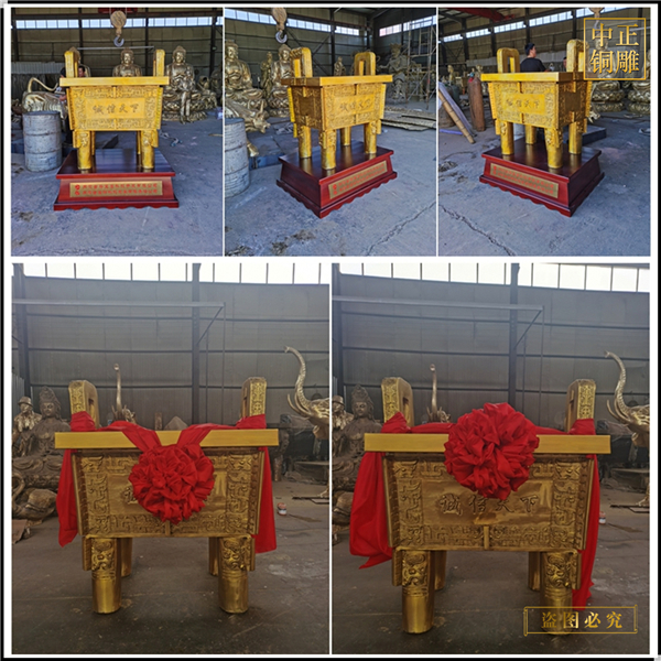 中正銅雕-鑄造1.5米銅鼎、鑄造1.5米銅鼎價格、鑄造1.5米銅鼎廠家,我公司集科研、開發設計、普通鑄造、一次性整體澆鑄、精密鑄造于一體。本公司技術力量雄厚,設備,不但重視中國青銅器原有的藝術風格,還繼承了文物原有的藝術品味,在繼承和發揚古老文化的同時,更深一步為新老客戶定身量制各種銅制、鐵制工藝品等產品,曾多次受到寺廟長老和美術學院教授的好評。